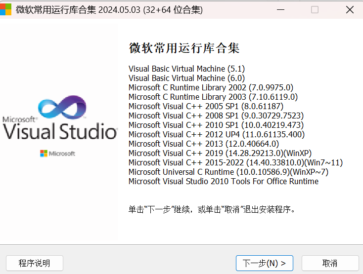 这一步为了防止安装过程出现报错,需要下载微软运行库合集