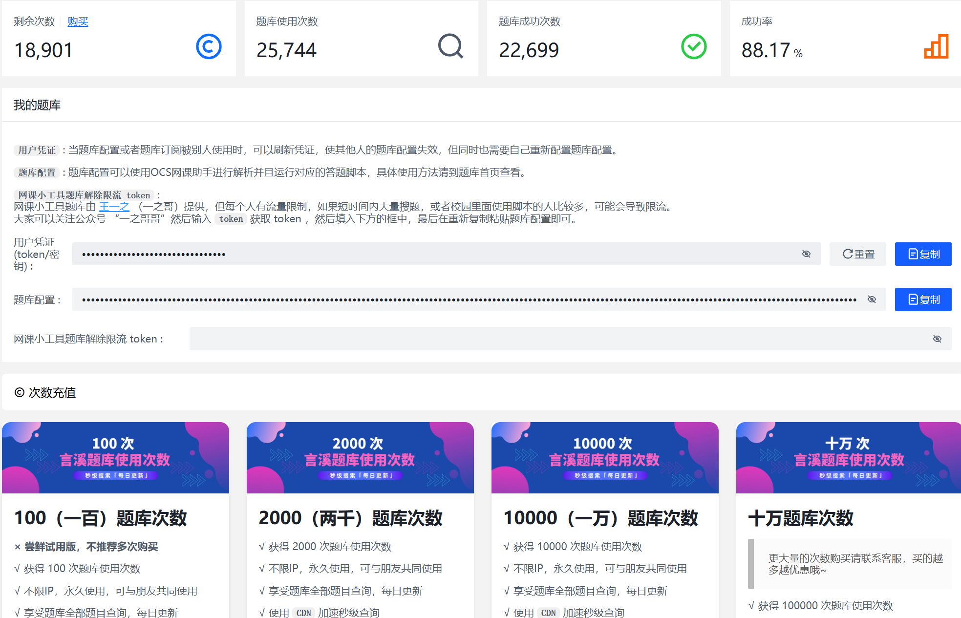 上方胡显示你的做题次数,,已使用次数,成功次数,成功率等信息,下方的内容中需要选择你的题库配置复制第二个